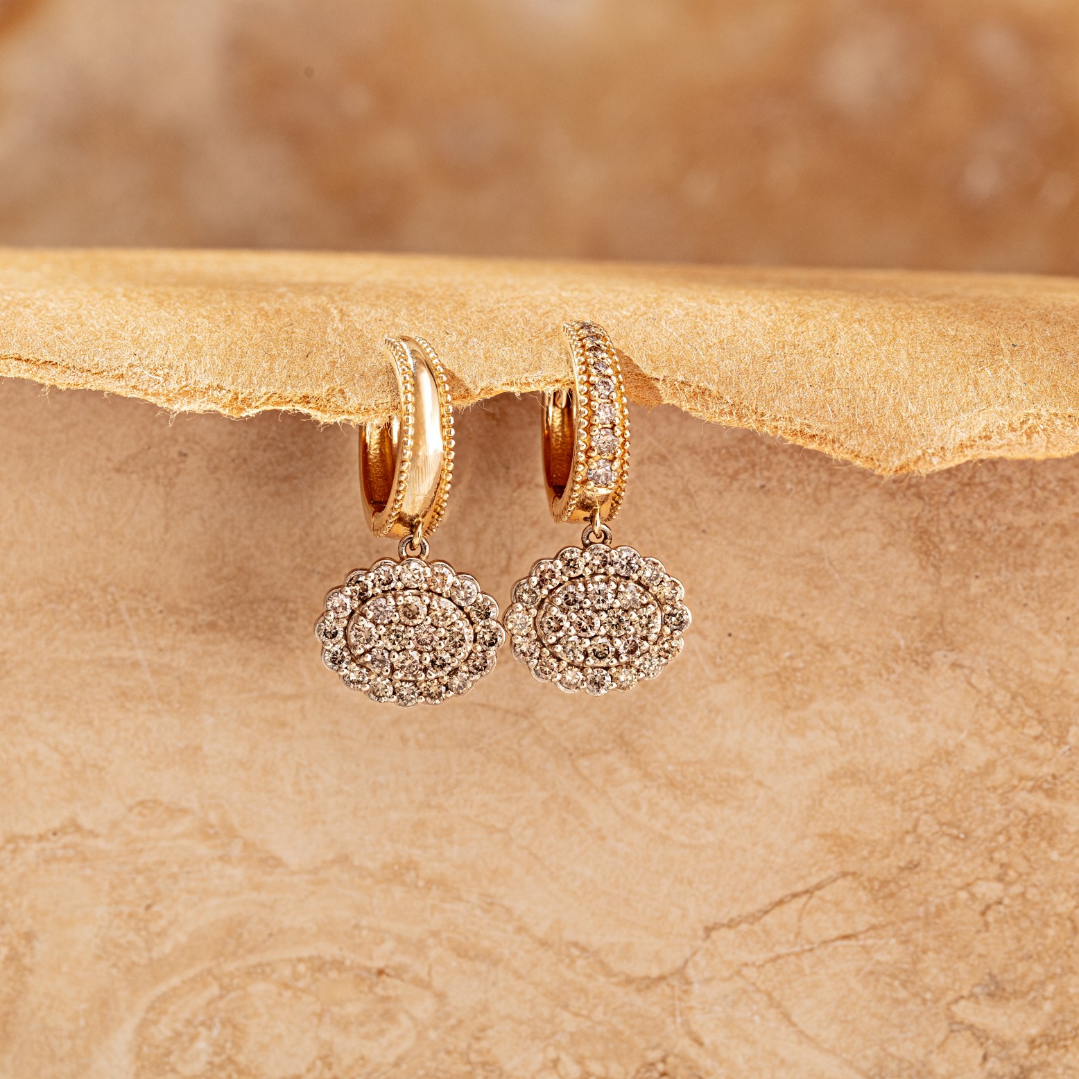 READY-TO-WEARThese mismatched dangling earrings in yellow and white gold bring a playful elegance to any look, featuring warm champagne diamonds that shimmer with subtle brilliance.