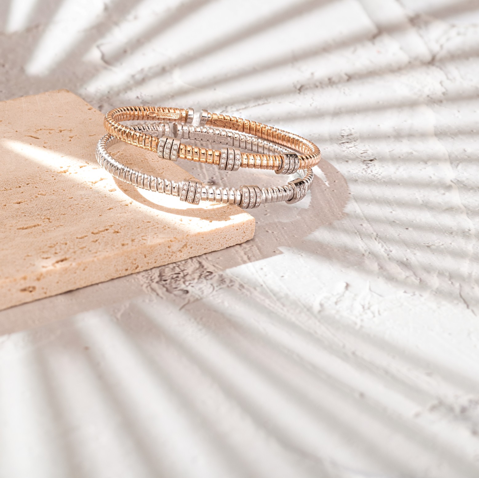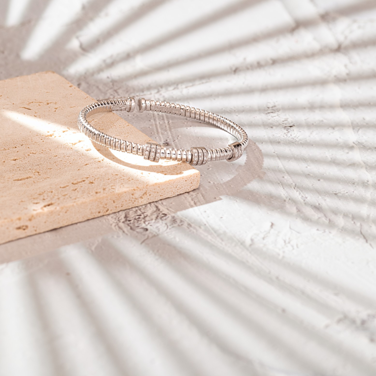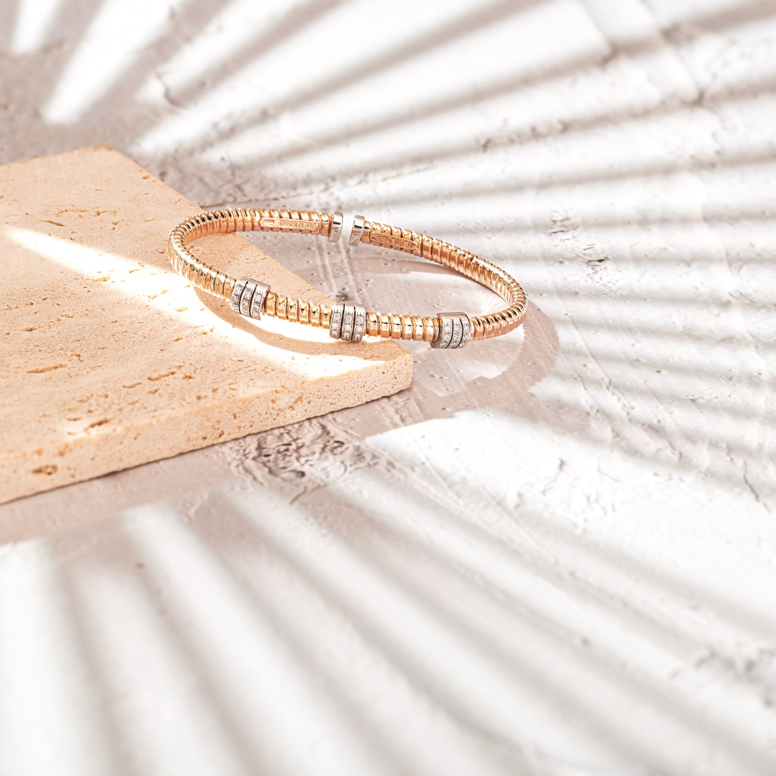 READY-TO-WEARA sculptural Tubogas in 18K gold, crowned with a nine-line diamond barrel and supported by a hidden steel spring.