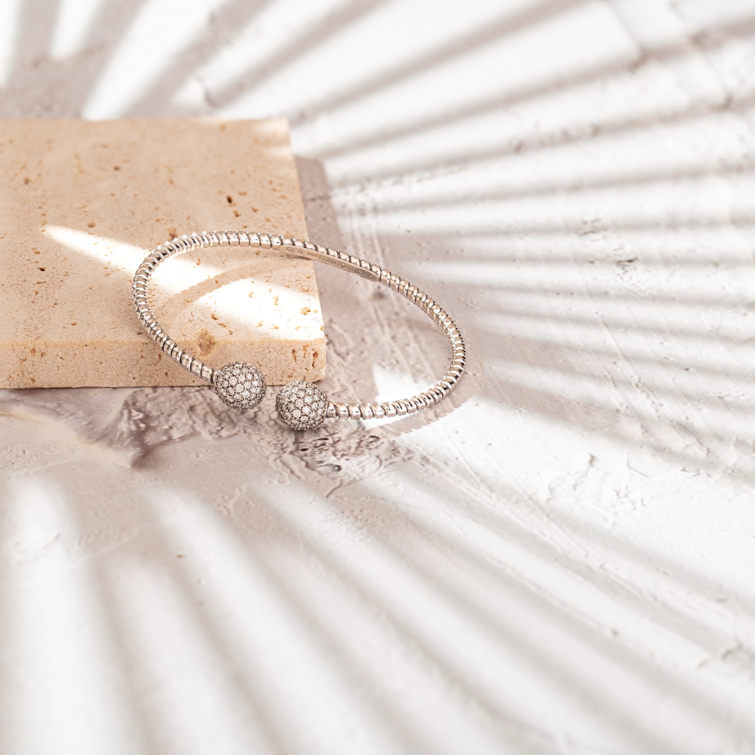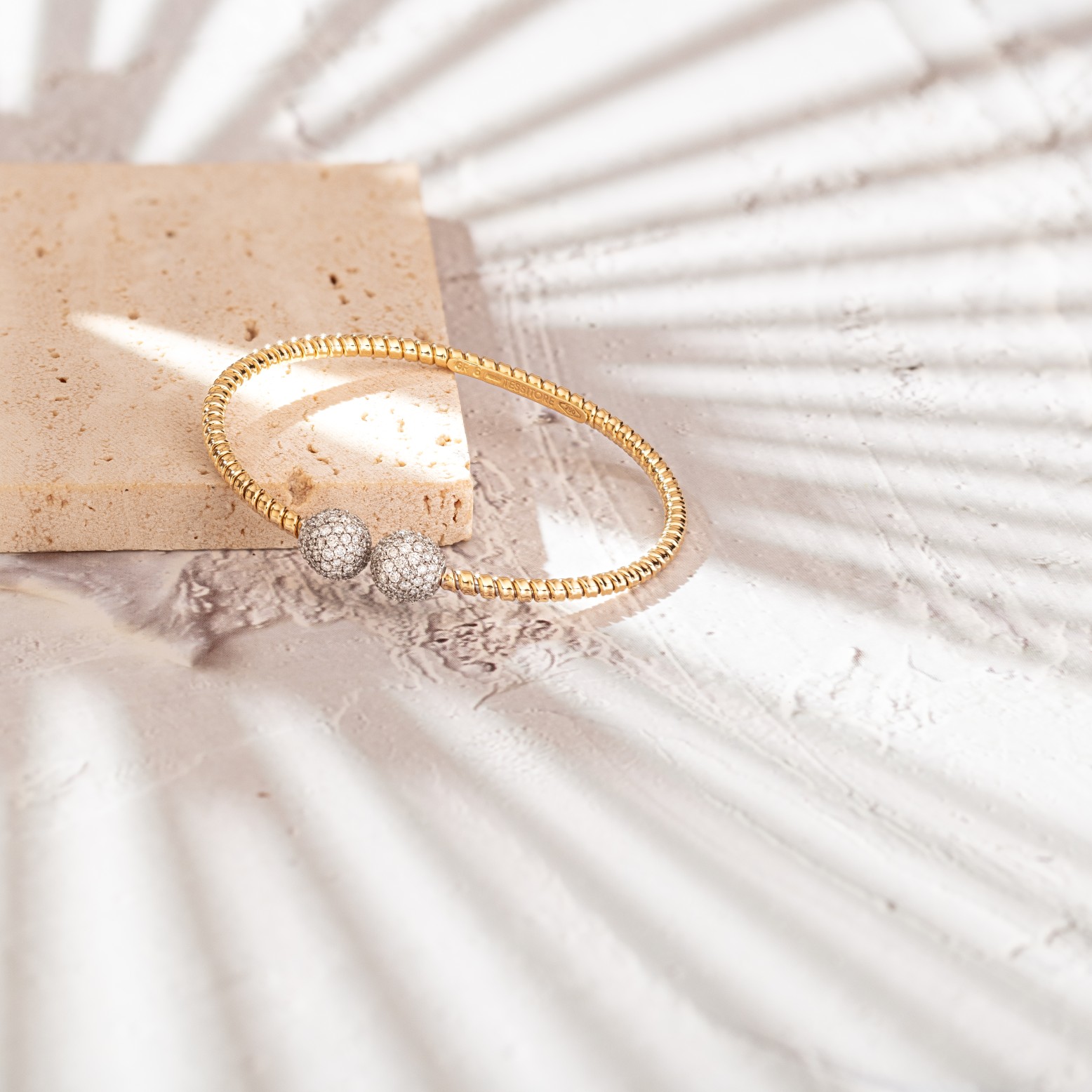 READY-TO-WEARAn open Tubogas bracelet in 18K gold, finished with diamond spheres on both ends.