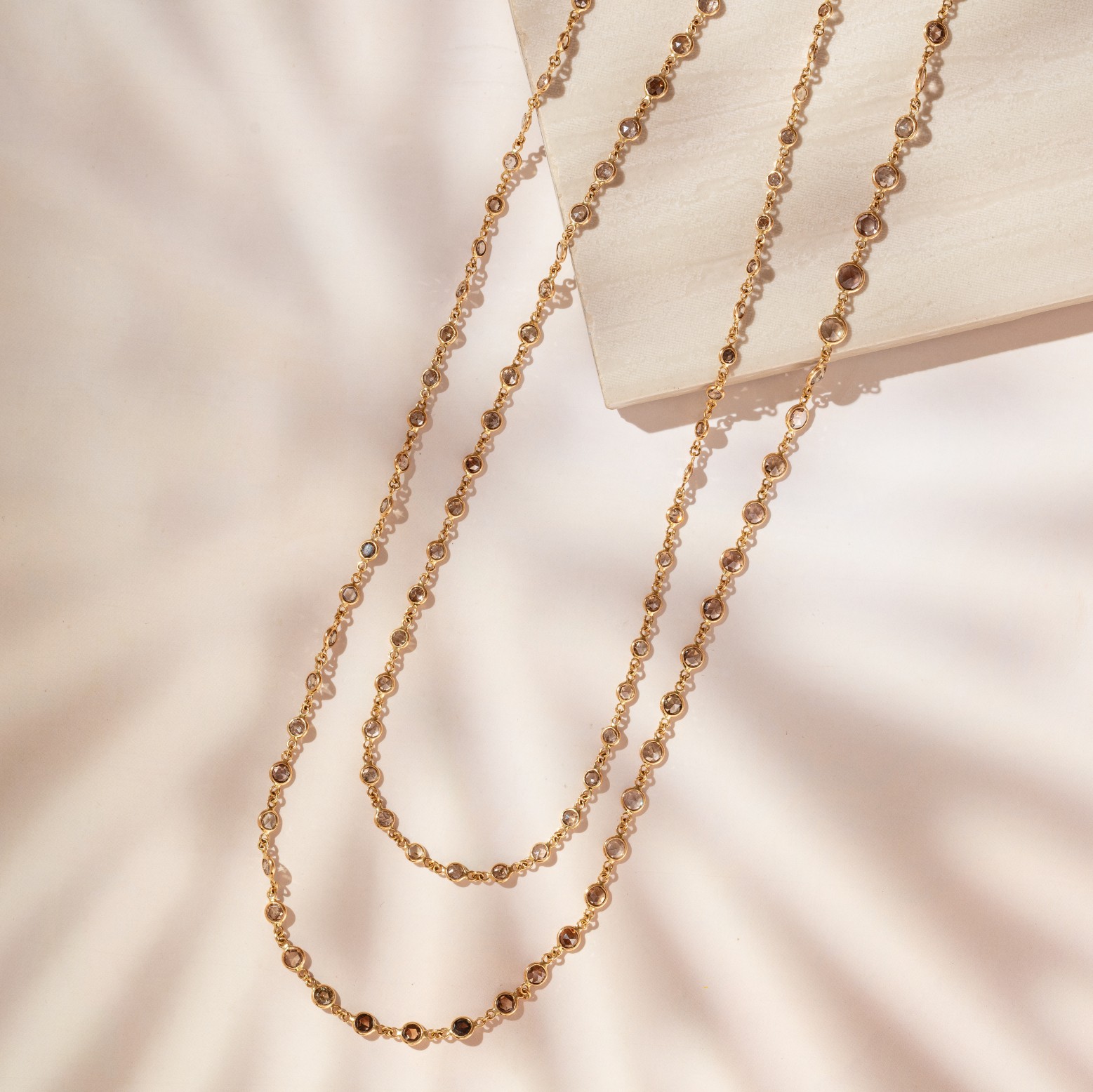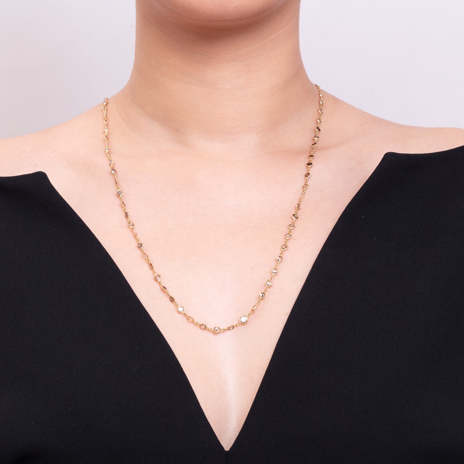 READY-TO-WEARA versatile 40-inch necklace handcrafted in solid 18K gold, featuring a series of bezel-set rose-cut champagne diamonds that glow with subtle warmth and brilliance.