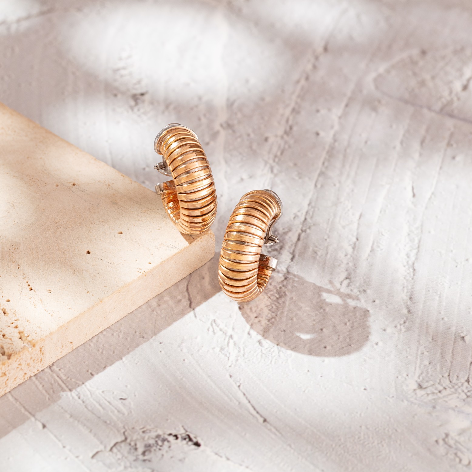 READY-TO-WEARThe Tubogas Classic Round Hoop — 18K gold, rounded profile, and gentle flexibility with a concealed steel core.
